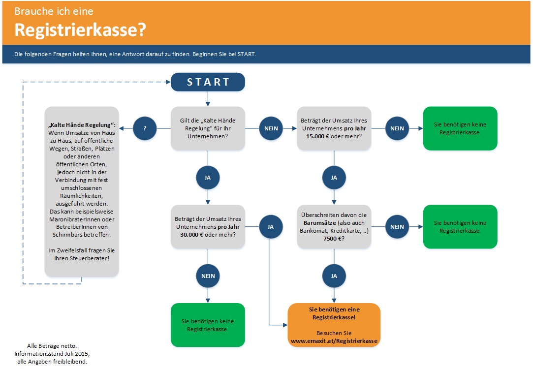 Hier eine kleine Hilfestellung ob Ihr Unternehmen ab 1.1.2016 Registrierkassenpflichtig ist: